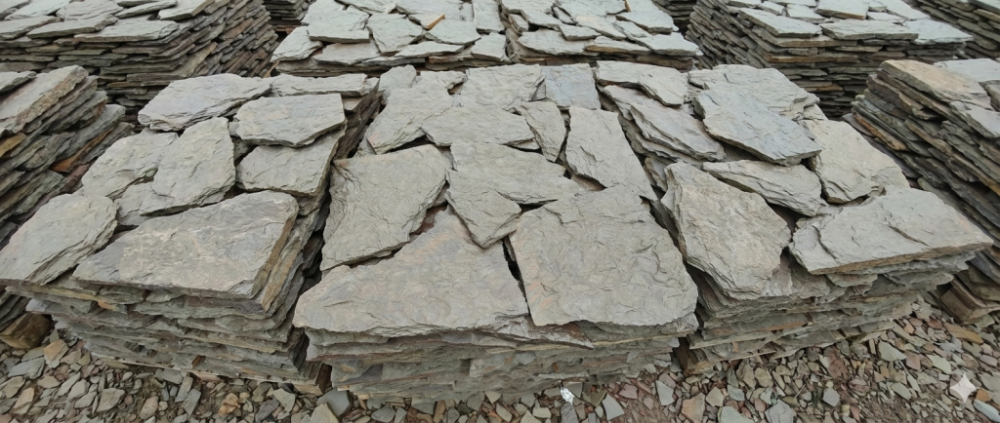 Плитняк песчаник дракон серо-зелёный для облицовки цоколя, отмостки 20-35 мм